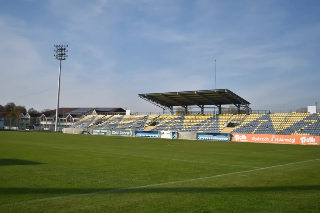 UEFA-szabványú, természetes füves és műfüves futballpályák (105 x 68 m) bérleti díja: 60.000,-Ft/90 perc.